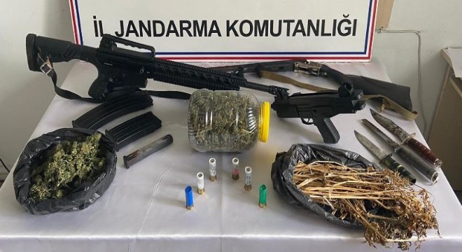 Bingöl'de jandarma ekiplerinin belirlediği bir adrese operasyon yapıldı, ruhsatsız çeşitli silahlar ve esrar ele geçirildi, 2 şüpheli gözaltına alındı.