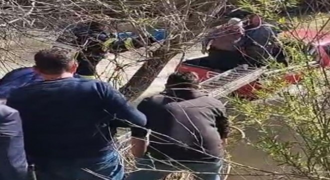 Narman’da dereye devrilen otomobildeki sürücü itfaiye ekiplerince çıkarıldı.