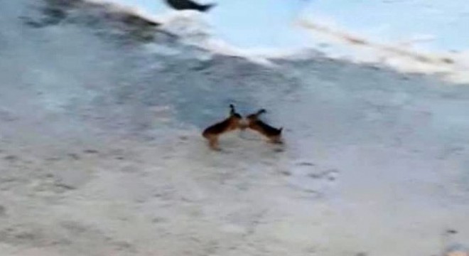 Tavşanların kavgası kameralara takıldı