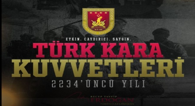 Cumhurbaşkanı Recep Tayyip Erdoğan, Türk Kara Kuvvetlerinin 2234'üncü kuruluş yıl dönümü dolayısıyla sosyal medya hesabından kutlama mesajı yayımladı.
