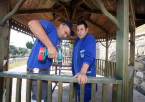 Deforme olmuş malzemeleri tespit ederek bakımını ve onarımını yapan belediye, eskimiş, kırılmış ve boyası çıkmış çardak ve oyun alanlarının onarımı için de hızla çalışmalara devam ediyor.