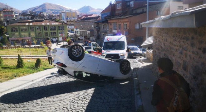 Erzurum’un Yakutiye ilçesi Lala Paşa Mahallesi’nde meydana gelen kazada bir araç takla atarak ters döndü.