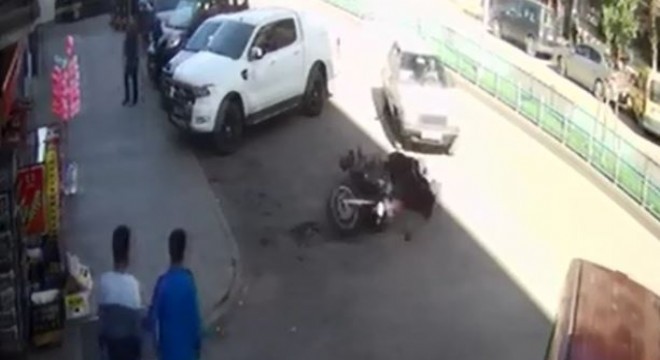Erzurum’da Şenol Gökdere isimli bir vatandaş otomobiliyle yaptığı ani manevra sonucunda motosikletli 2 polise çarptı. Yaralanan polisler hastaneye kaldırıldı. Kaza anı ise güvenlik kameralarına yansıdı.