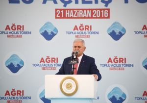 Toplu açılış töreninde Ağrı’nın kendisi için ilk göz ağrısı olduğunu ve dedelerinin Ağrı’nın Eleşkirt ilçesi Tahir beldesinde yaşadığını belirten Başbakan Yıldırım, “Türkiye'yi bölmeye çalışanlar, bizi birbirimize düşürmeye çalışanlar, bunlar yerli değil, bunlar başkalarının, üst akıllarının akıllarıyla hareket ediyorlar. Asla ve asla sizin geleceğinizi, sizin çocuklarınızın geleceğini bunlar düşünmüyor, bunlar efendileri ne derse onu yapıyorlar. Bunlar sadece ayrıştırmayı, öldürmeyi, insanların arasına ayrılık tohumları ekmeyi bilirler ama Allah'a şükür Ağrı, bu oyunlara gelmedi, elinin tersiyle terörün bu oyunlarını itti. İnadına 'kardeşlik' dediniz, inadına 'birlik' dediniz, inadına 'beraberlik' dediniz. Siz terör örgütüne yüz vermediniz, hendeklere izin vermediniz, onlar 'Böleceğiz' dedi, siz 'tek Türkiye' dediniz. Onun için sizlere teşekkür ediyorum" şeklinde konuştu.